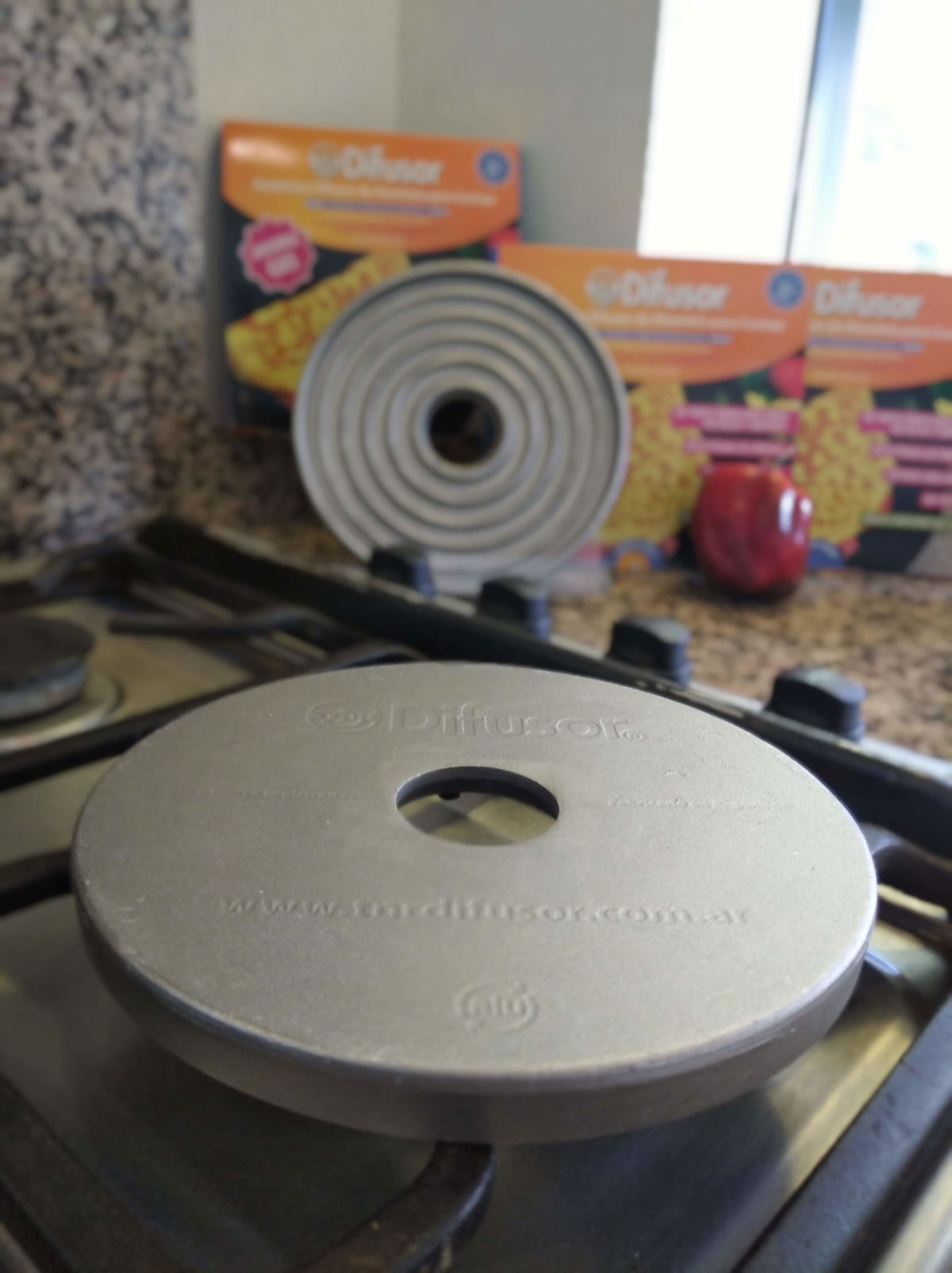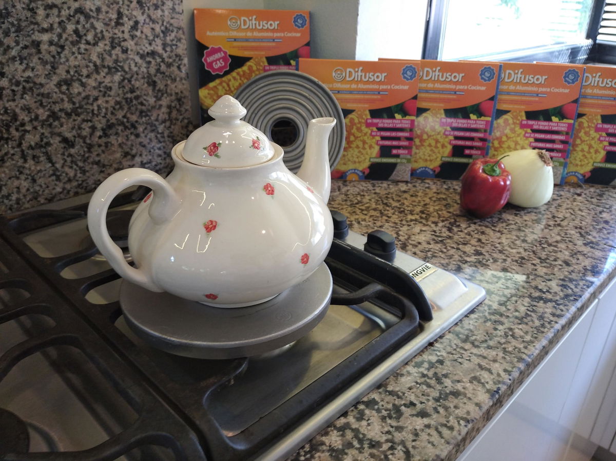 Posee un Diámetro de 18cm, creado para cocinas hogareñas con mecheros de hasta 10cm. Tiene un peso de 500grs y una altura de 1.5 cm.